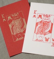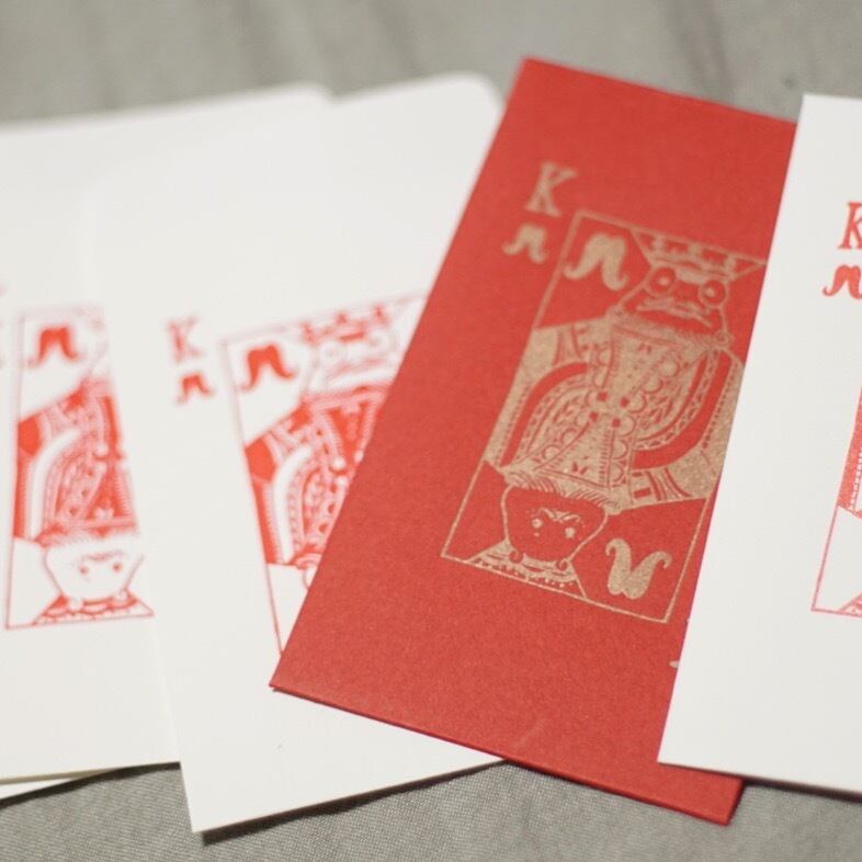 デザインはトランプのキングをモチーフに、カエルカバン 広報担当のキャラクターを二人描いています。